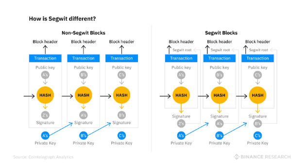 세그윗이란, 비트코인의 블록에서 디지털 서명 부분을 분리함으로써 블록당 저장 용량을 늘리는 "소프트웨어 업그레이드"