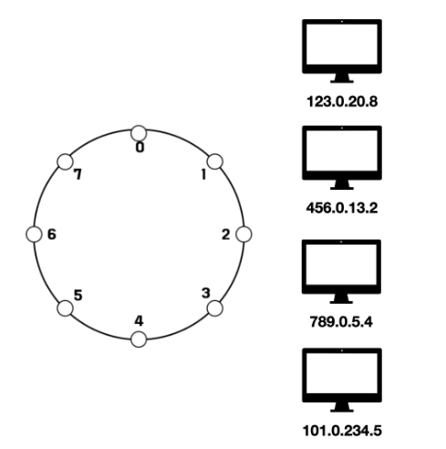 4. 이후 호스트들은 자신 다음에 있는 호스트 중 가장 가까이에 있는 호스트의 IP주소를 알게 됨