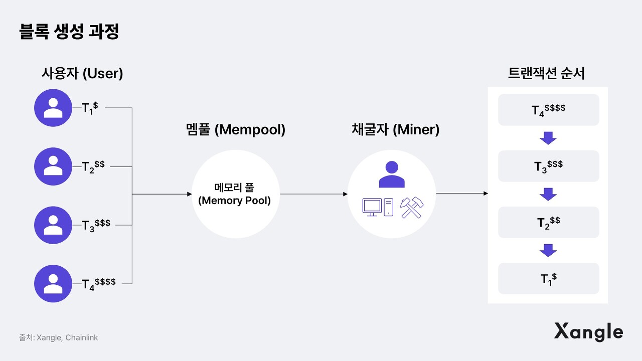 하나의 블록 내에서 트랜잭션을 처리할 수 있는 유일한 권한을 가진 채굴자는 EVM 내 MemPool 설계로 이익을 실현 할수있습니다.