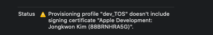 - "doesn't include signing certificate"... 라고 아래와 같이 뜨는 경우,
