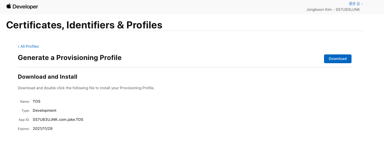 download 된 파일들Xcode에 위에서 받은 Provisioning Profile 등록