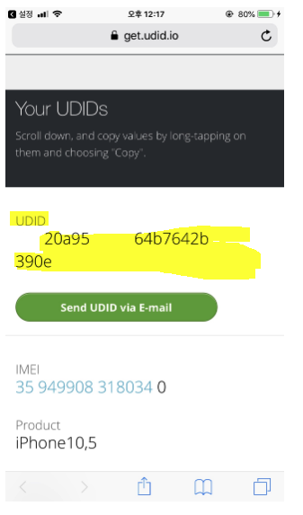 1. 사파리(인터넷) 앱 실행후 https://get.udid.io/